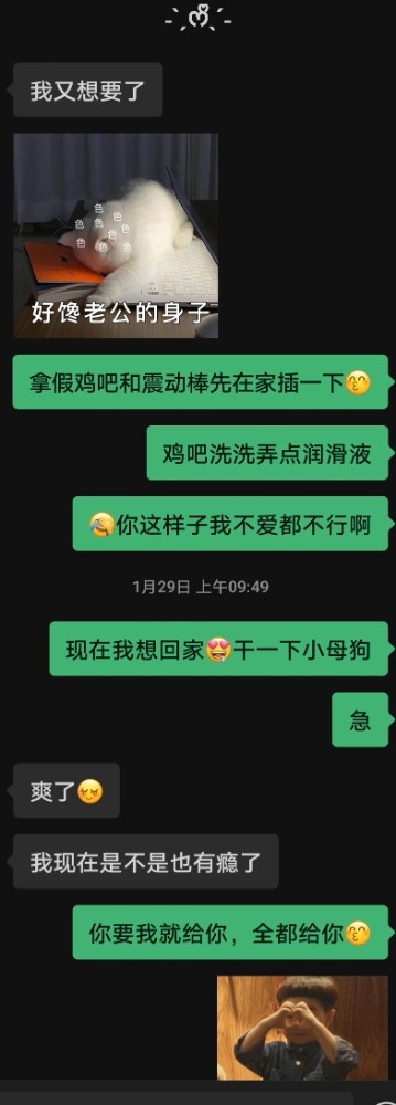 分享一下喜悦的情绪,我和老婆结婚很多年了,我们两个性爱就和普通夫妻一样,逐渐没了当初的激情,偶然一次机会接触了某个夫妻乐园,看到别人夫妻的激情,加上和我老婆中间也有很多插曲,我也开始逐渐有了淫妻的念头,配合着单男成功约了一次3p,但是体验不是那么的好,然后接触了91,在这里认识了很多要好的朋友,也见识了诸多牛鬼蛇神,让老婆完成了3p,单约,交换,中间也停了好久没有活动过,年后偶然发了一个帖子,老婆又去赴约了一次,正是这次发现了老婆的内心世界……(附聊天记录)手机码的有点乱,有空再整吧。