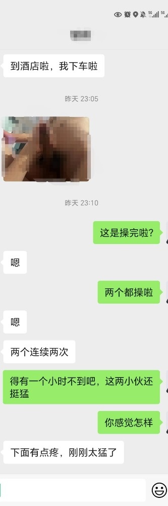 到了电影院的时候,实习生才告诉媳妇,还有个朋友也一起过来看电影,是他的同学,原本媳妇也没想那么多,觉得就是实习生炫耀自己带了个女生,而这个同学是一起看完电影而已,谁知,在电影的过程中,实习生就跟媳妇提他这个同学怎样的情况,是个近20年的处男,屌很大,但是没用过,自身又有点恋母情结,这些事情。当时媳妇开始意识到实习生可能有想法了。就故意装作听不懂,但是一场电影下来实习生一直磨着媳妇。到后面结束后,媳妇是有点生气了,不过这个小年轻都挺会哄的,逛商场的那段时间,实习生和同学一起把媳妇哄得很开心,就同意了晚上一起3P。最后还是让媳妇去再买了一盒避孕套。三人一起打车去了酒店。